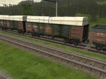 Полувагон Российских железных дорог №0017 порожний и груженный досками