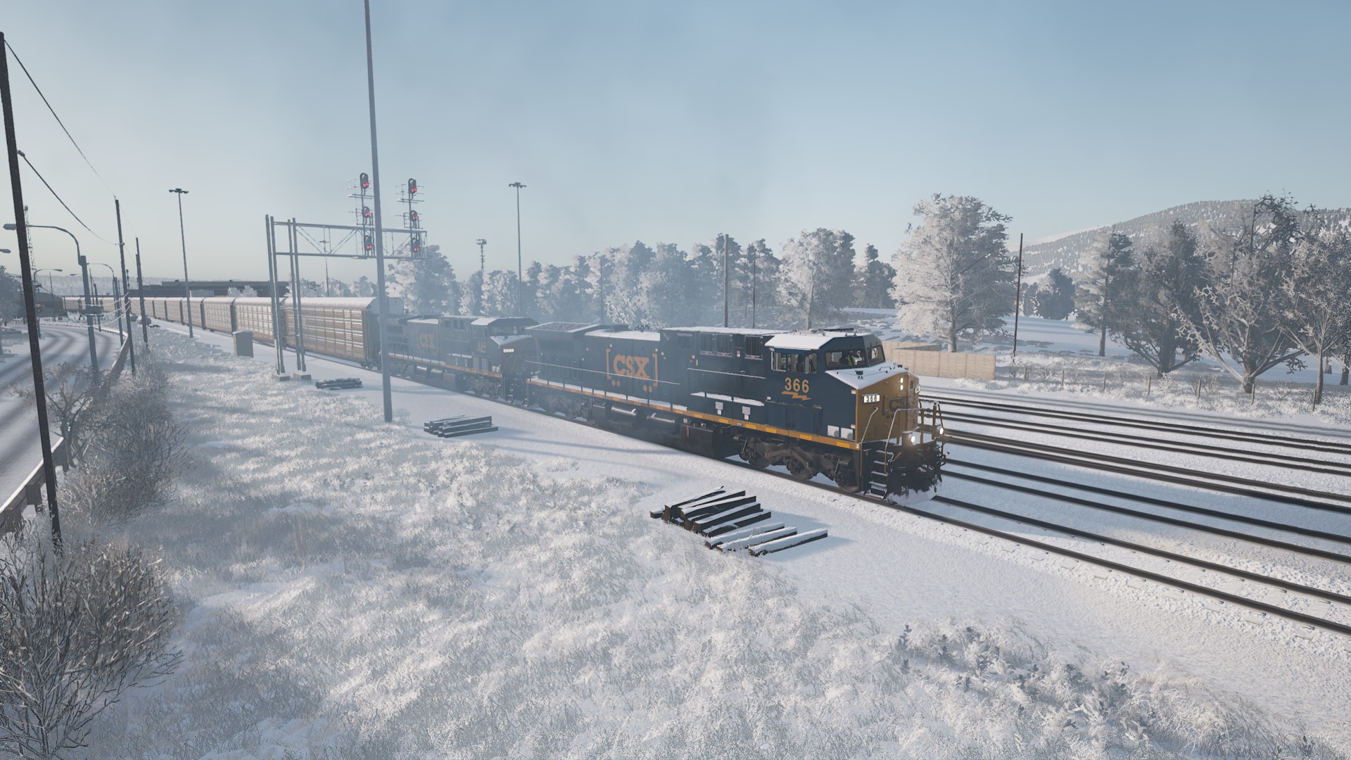 Ещё из впечатлений. Совершенно не понравилось небо. Оно как и в более старых ж/д играх - плоское и неестественное. 2017 года на дворе... Есть возможность выбрать погоду и время года, но реализовано это весьма так себе. Дождь выглядит не красиво. Есть зима и снег, но и тут всё это странно смотрится - вроде зима, а птички поют и на деревьях листья зеленеют, только снегом чуть присыпаны. Такое впечатление, что это не зима, а просто среди лета неожиданно выпал снег.