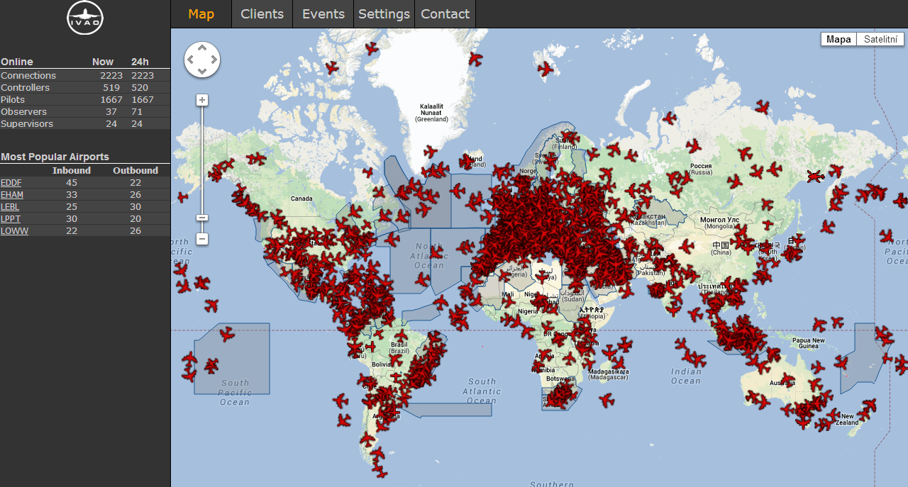 IVAO есть интересное явление- Crowded Skies. Это по сути админы тестируют отказоустойчивость серверов, при этом летает максимум пилотов, аэропорты функционируют в режиме Full Staff. Под спойлером скриншот с подобного мероприятия. Скрытый текст: