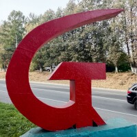 Серп и молот встречающий всех проезжающих и проходящих по Московской улице.