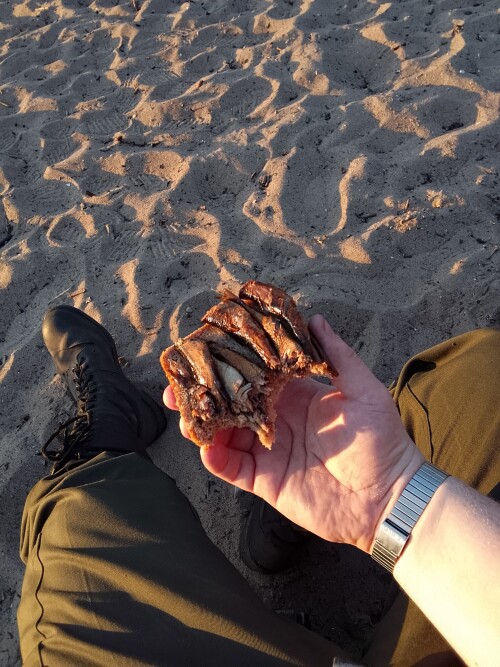Честно сказать темнота застала меня на очень большом расстоянии от лагеря и мне пришлось очень долго идти в кромешной тьме изредка разрываемой лучами света автомобильных фар , подсвечивая себе путь фонариком телефона, с трудом заставляя себя передвигать полу-болевшие полу-онемевшие ноги. В голове постоянно крутились мысли что вот за этим поворотом, деревом, пеньком ,автобусной остановкой меня точно ждёт либо дикий зверь, либо местный шиз с ножом или топором , а может и ружьём... И что если я несмотря на всё , всё таки дойду до своей палатки живым и здоровым то это будет величайшим туристическим достижением моей жизни, ну или хотя-бы одним из величайших туристических достижений. Последние метры от ботика до палатки прошёл каким-то чудом... Буквально волоча ноги потому что они уже толком не поднимались. Разогрел себе стандартный ужин из тушёнки с горячим чаем и галетами , ну и шоколадной пастой на десерт. С трудом его в себя запихнул и изнеможденный наконец-то улёгся спать. Судя по гугл картам за эти сутки я прошёл более 30 км пешком, притом процентов так 30-40 по пересечённой местности...