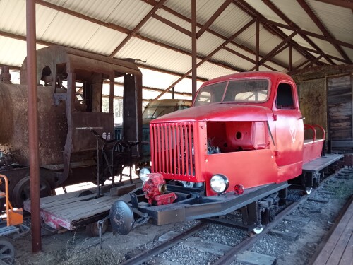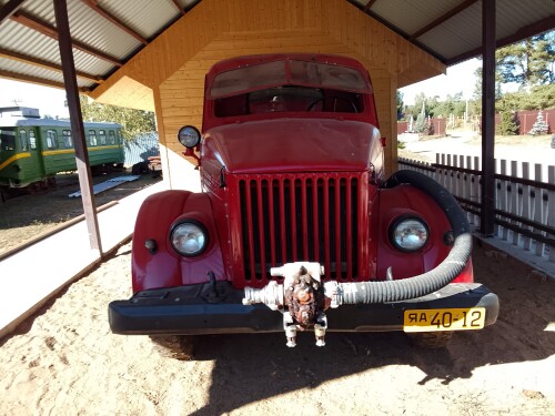 Позавтракав и собрав вещи садимся на транспорт и едем в посёлок Талицы где сразу же добираемся до "Того самого" музея УЖД где нас сразу встречает большая и красная пожарная машина За которой виднеется стоящая в тупике АМ-1 находящаяся как видно в процессе реставрации.