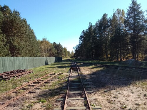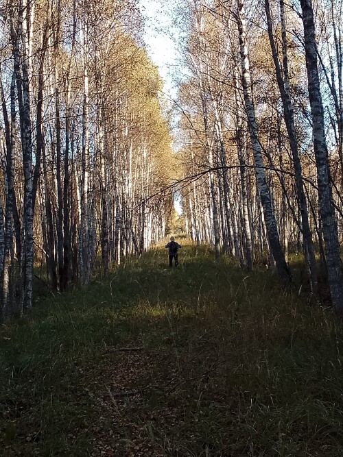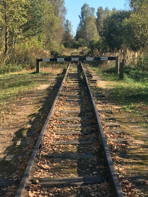 После завтрака принимаю решение пройтись по остаткам УЖД от Веськово до Купанского , иду по свежепроложенной колее и напротив Петрова ботика упираюсь в (надеюсь что только временный) конец свежепроложенного пути.
