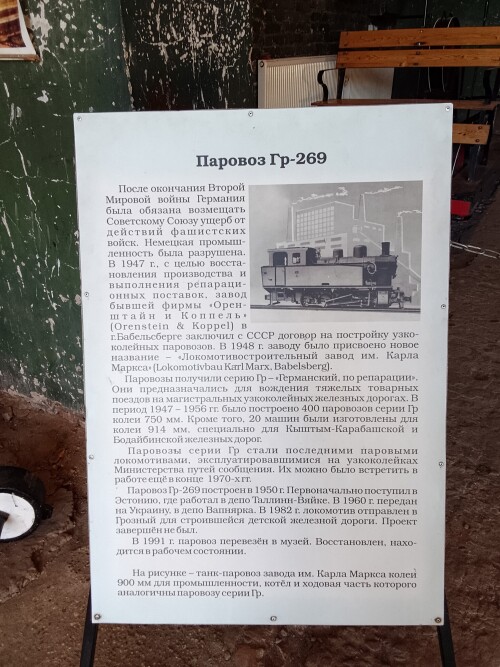Один из экспонатов с которых начиналась история музея танк паровоз Фт-4 единственный сохранившейся экземпляр. В лучшие годы ездил с ретропоездом из двухосного Гёрлицовского вагона.
